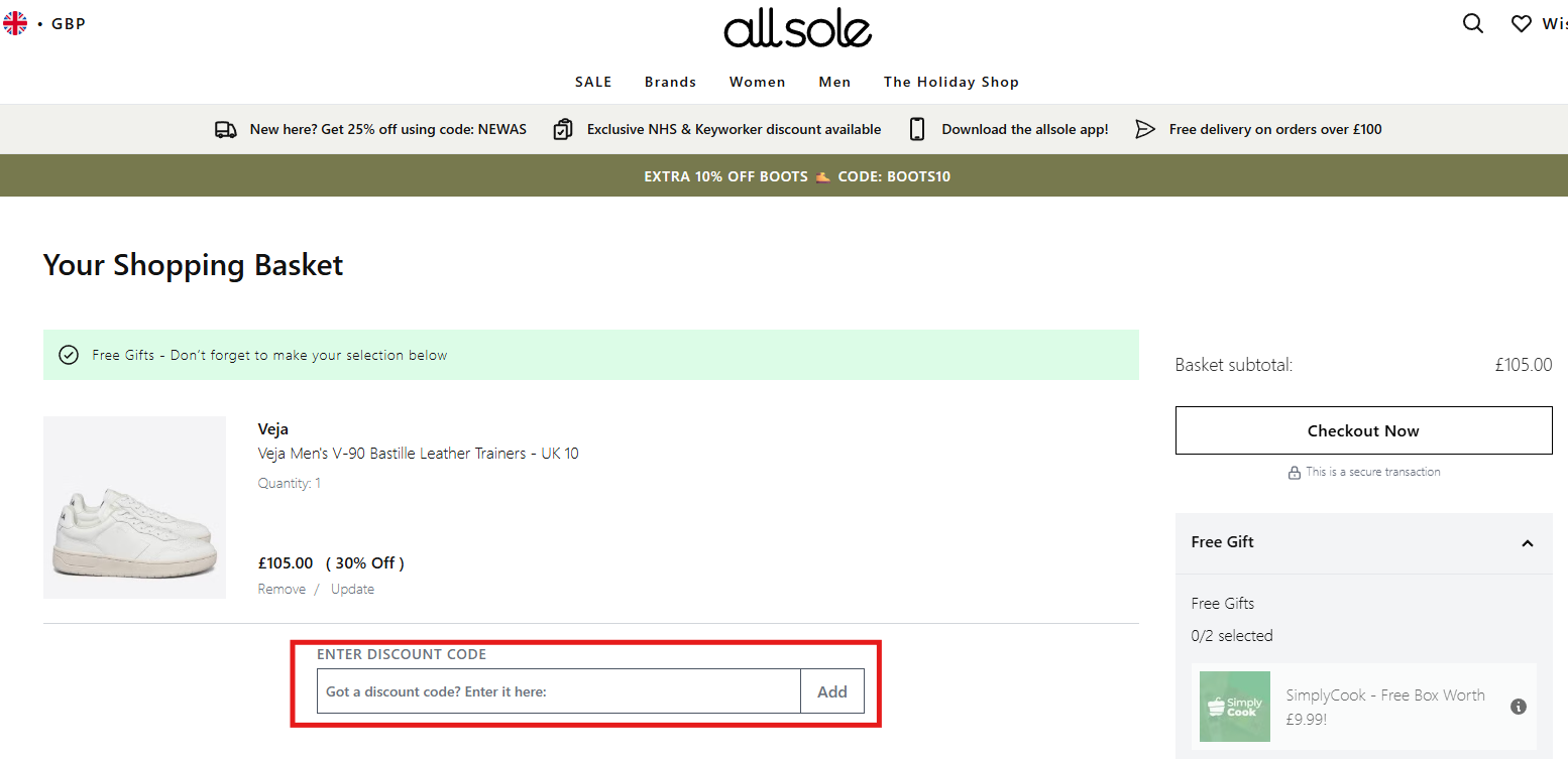 Wybierz swoje ulubione buty z oferty – sklep oferuje obuwie wielu renomowanych marek. Przejdź do koszyka, kiedy Twoje zakupy są już gotowe. W koszyku znajdziesz pole na kod promocyjny. Wklej tam wcześniej skopiowany AllSole kod rabatowy. Rabat zostanie naliczony automatycznie.