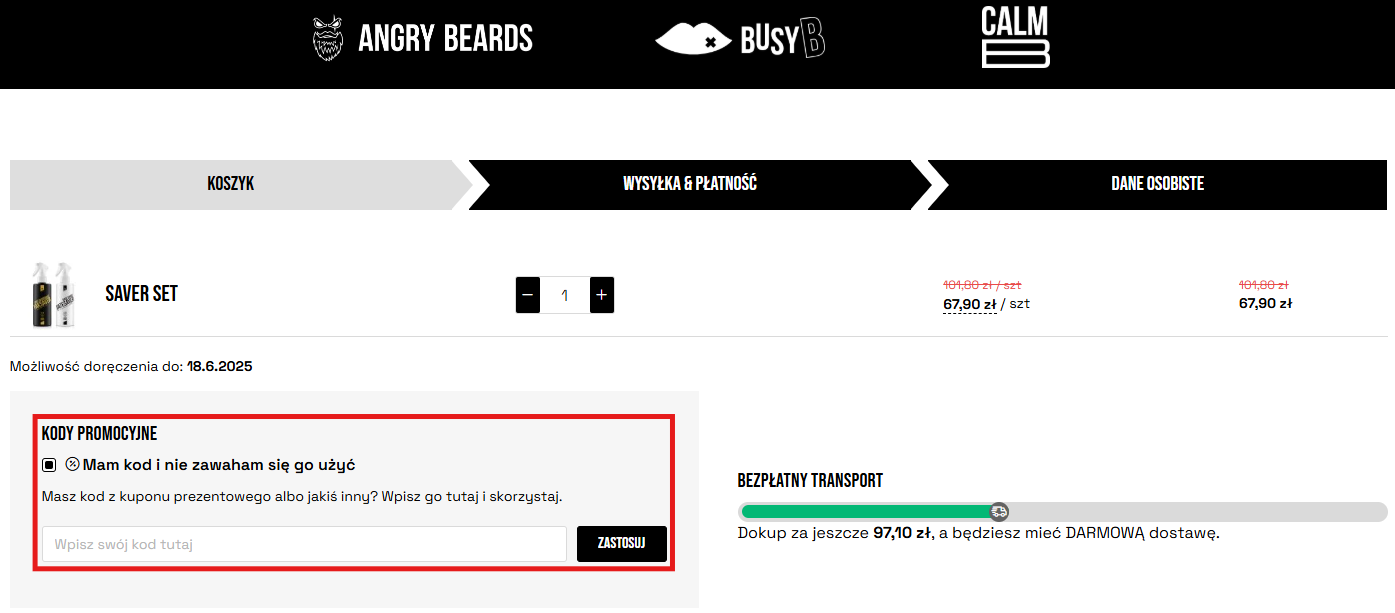Kliknij kod, a następnie go skopiuj. Gdy już to zrobisz to przejdź do sklepu poprzez Tipli. Dodaj do koszyka wybrane produkty – kosmetyki do brody, stylizacji włosów, pielęgnacji skóry lub akcesoria. Gdy zakończysz wybór, przejdź do finalizacji zamówienia.