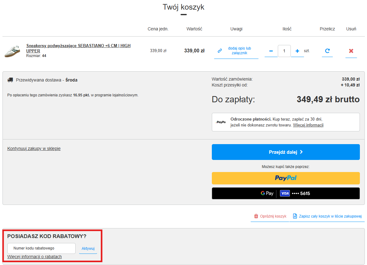 Podczas finalizacji zamówienia znajdziesz specjalne pole na kod rabatowy. Wklej tam kod skopiowany z Tipli i zatwierdź. Zniżka naliczy się automatycznie – zobaczysz ją przed dokonaniem płatności.