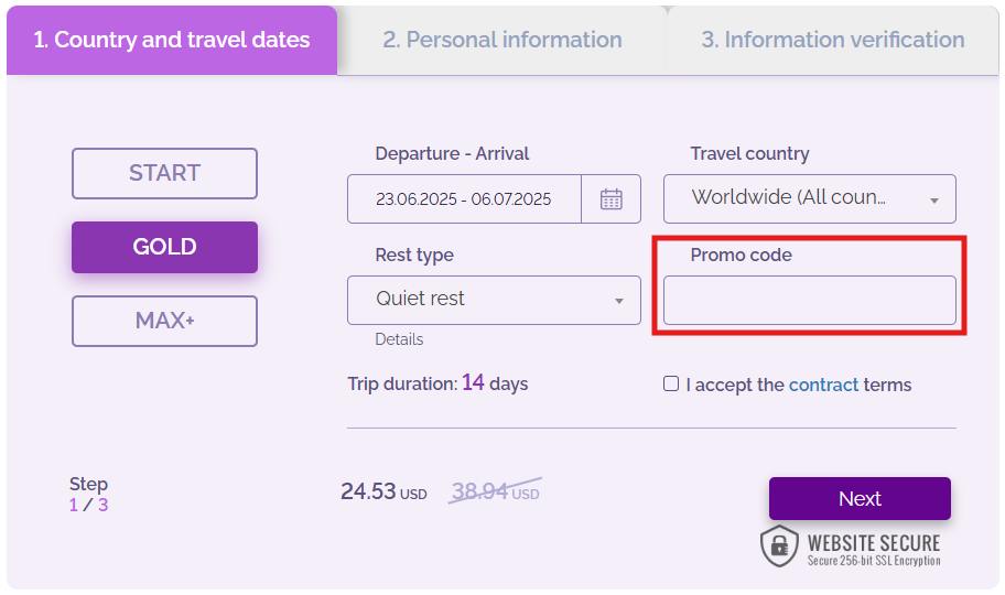 Kliknij kod i go skopiuj. Następnie przejdź na platformę ubezpieczyciela. Na stronie EKTA wybierz rodzaj ubezpieczenia, datę wyjazdu, kraj docelowy i liczbę ubezpieczonych osób. Uzupełnij dane zgodnie z formularzem, a następnie przejdź do podsumowania oferty.