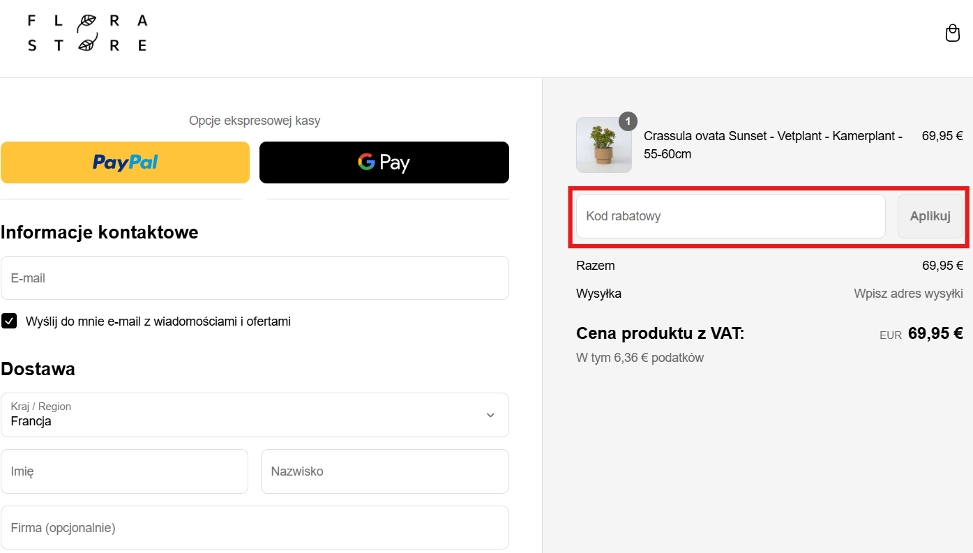 W trakcie finalizacji zamówienia znajdziesz specjalne pole na kod promocyjny. Wklej tam skopiowany kod i zatwierdź go, aby naliczyć zniżkę.