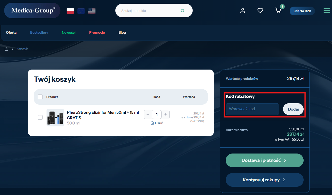 Przeglądaj ofertę sklepu i dodawaj interesujące Cię produkty do koszyka – niezależnie od tego, czy szukasz intymnych akcesoriów, preparatów wspomagających libido czy kosmetyków. Przejdź do koszyka i znajdź pole oznaczone jako „Kod rabatowy”. Wklej tam kod skopiowany z Tipli.pl i kliknij „Dodaj”. System automatycznie naliczy zniżkę.