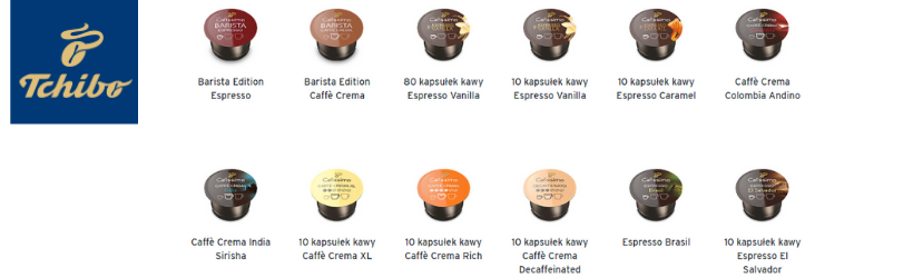 Wybierz kapsułki Tchibo, by cieszyć się wspaniałym aromatem i mocą świeżo mielonej kawy z ekspresu, którą przygotujesz w kilka sekund. Tchibo Cafissimo to odrobina luksusu i wysokiej jakości kawa z oszczędnością Twojego czasu. W sklepie Tchibo znajdziesz specjalnie stworzonych do tego drobne sprzęty AGD, w którym z każdej małej kapsułki powstanie pyszna, świeża kawa, która obudzi każdego oraz umili wolną chwilę. Nie ma nic prostszego, a zarazem tak dobrego, jak kawa Tchibo.