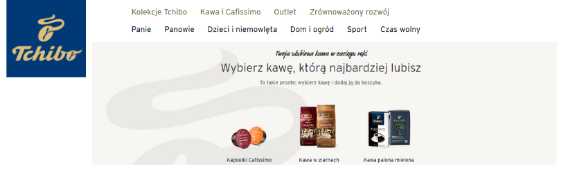 Wchodząc na stronę internetową sklepu Tchibo od razu da się zauważyć mnogość wyboru - i to nie tylko w sprawie kawy. W ofercie sklepu znajdziesz kolekcje odzieży i akcesoriów dla panów oraz pań, a także odzież i zabawki niemowlęce i dziecięce, artykuły domowe i ogrodowe, sprzęt sportowy, hobbystyczny czy rekreacyjny. W kawach Tchibo przebierać możesz spośród wielu rodzajów ziaren. Dalej znajdziesz także ekspresy i akcesoria do kawy, a także wiele innych sprzętów kuchennych, z którymi przygotowanie każdej porannej kawy będzie jeszcze przyjemniejsze. Kawę Tchibo kupuj na stronie marki, aby mieć pewność, że stawiasz na jakość.